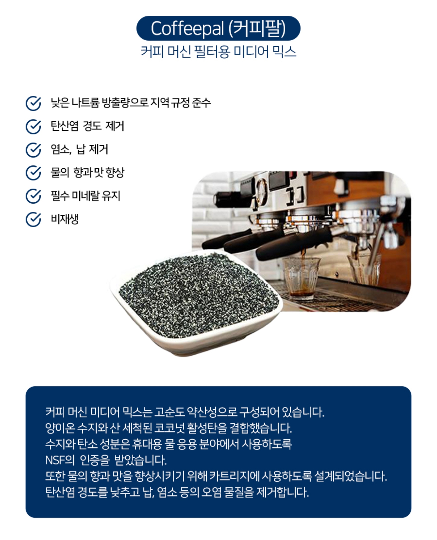 #FT-Coffeepal #스페셜레진 #크림 & #검정색구슬 #메쉬16~50(0.3~1.18mm) #pH6.5~8.5 #사온용도최대40도 #커피머신 필터용 #혼합여과재 #PET #투명리필카트리지250mm