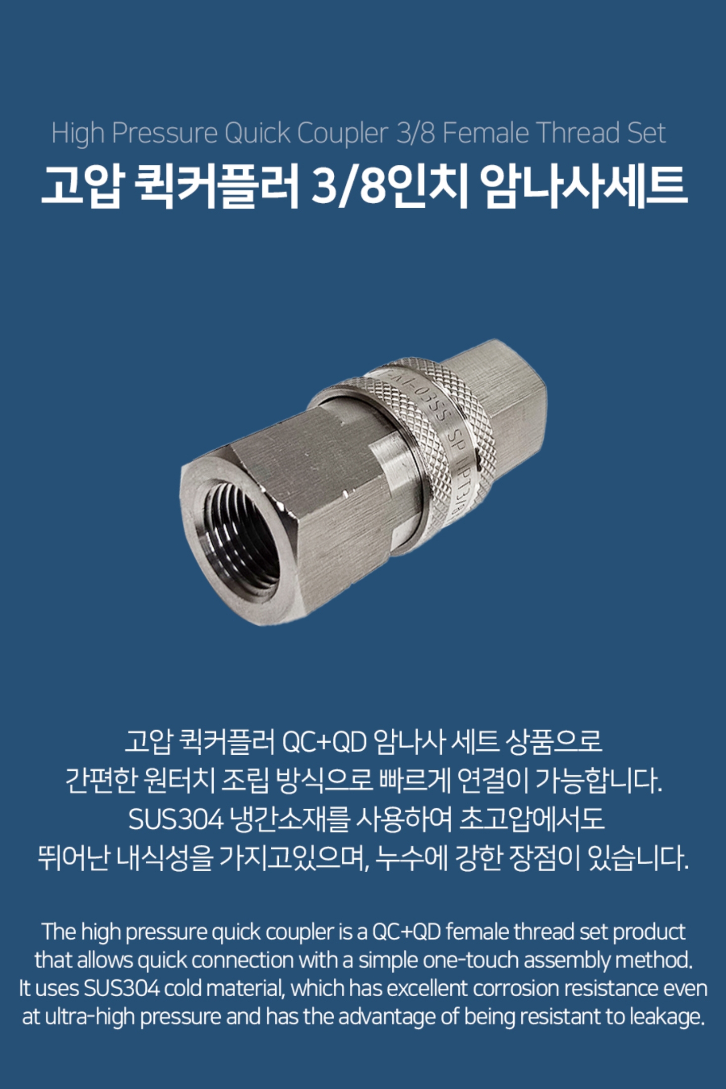 #FT-K1-03SS-SP-F #이지컨넥팅 #고압퀵커플러3/8인치 #QCQD #암나사세트 #최대압력280bar #압력100bar #재질SUS304 #NPT나사 #쿨링포그시스템용 #증발냉방장치 #온도저감 #미스트노즐 #안개분사 #대기정화 #온실가스절감 #수분공급 #방역 #고압노즐 #이지컨넥터 #암나사