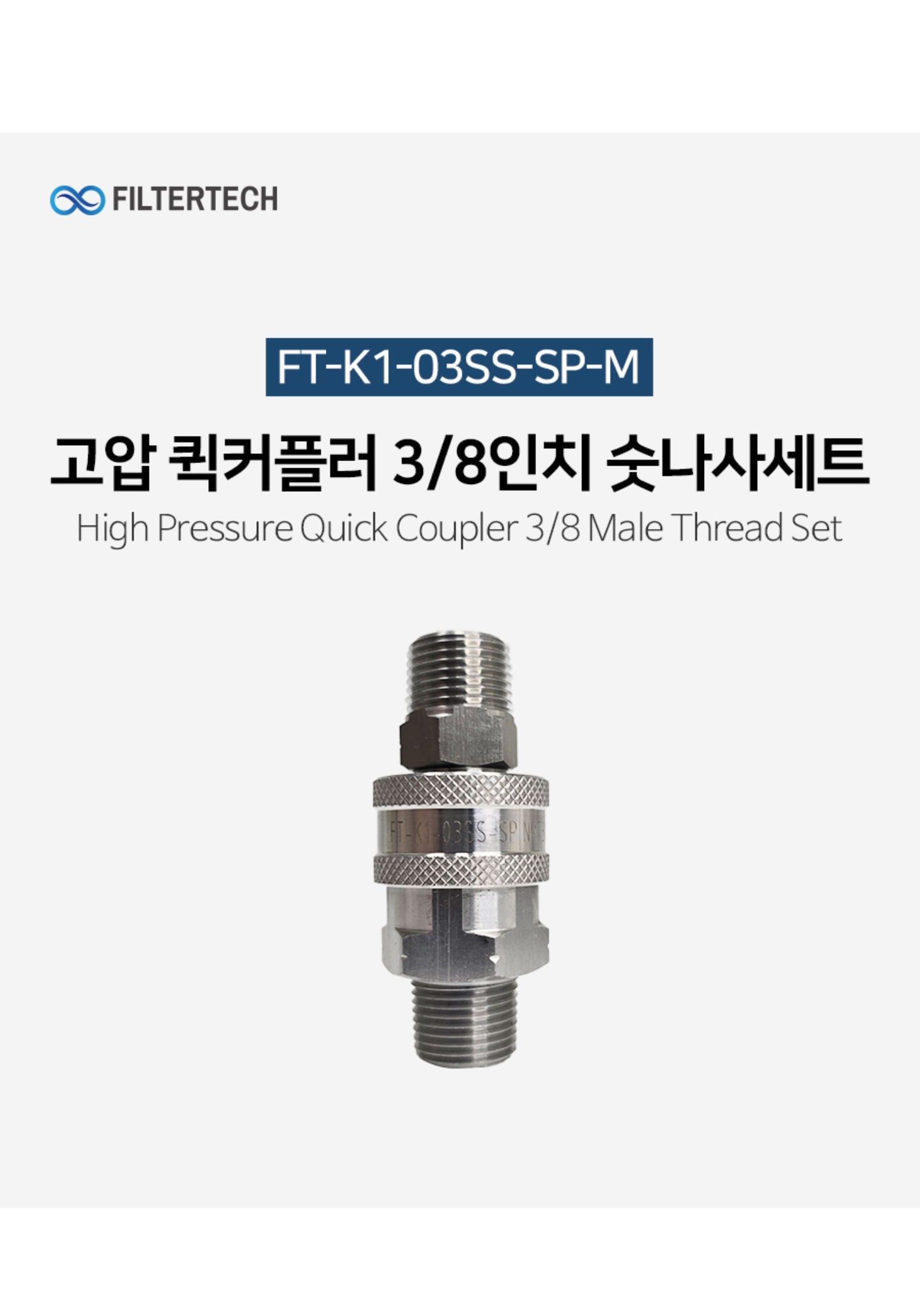 #FT-K1-03SS-SP-M #이지컨넥팅 #고압 #퀵커플러 #3/8인치 #QCQD #숫나사 #세트 #최대압력280bar #압력100bar #재질SUS304 #NPT나사 #쿨링포그시스템용 #증발냉방장치 #온도저감 #미스트노즐 #안개분사 #대기정화 #온실가스절감 #수분공급 #방역 #고압노즐 #이지컨넥터 #숫나사