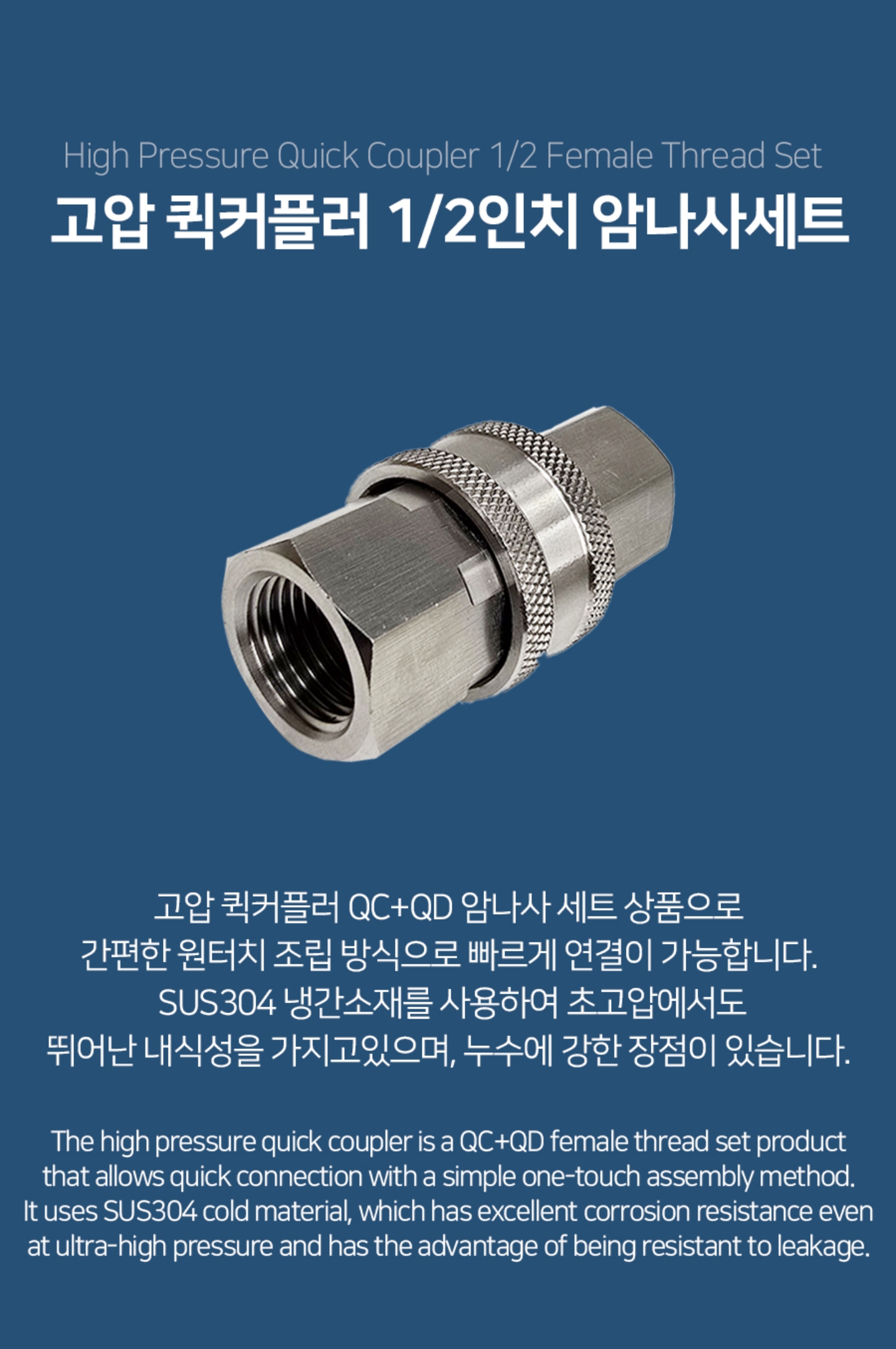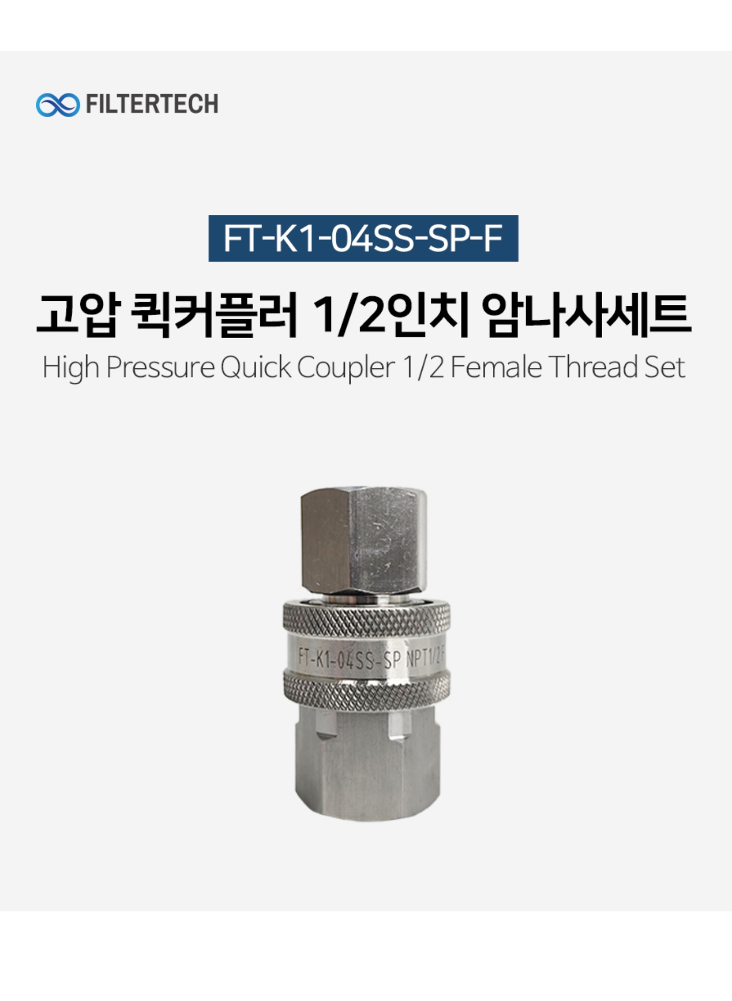 #FT-K1-04SS-SP-F #이지컨넥팅 #고압 #퀵커플러 #1/2인치 #QCQD #암나사 #세트 #최대압력280bar #압력100bar #재질SUS304 #NPT나사 #쿨링포그시스템용 #증발냉방장치 #온도저감 #미스트노즐 #안개분사 #대기정화 #온실가스절감 #수분공급 #방역 #고압노즐 #이지컨넥터 #암나사