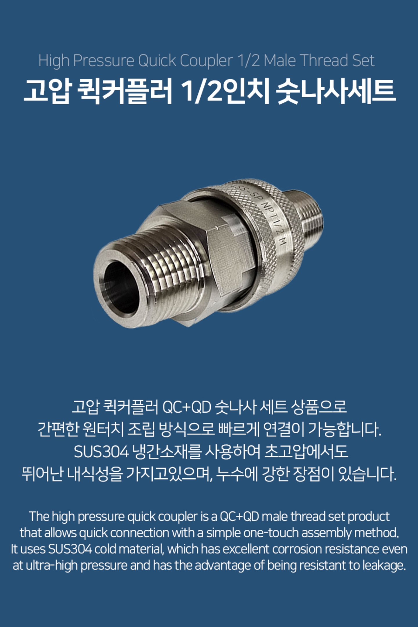 #FT-K1-04SS-SP-M #이지컨넥팅 #고압 #퀵커플러 #1/2인치 #QCQD #숫나사 #세트 #최대압력280bar #압력100bar #재질SUS304 #NPT나사 #쿨링포그시스템용 #증발냉방장치 #온도저감 #미스트노즐 #안개분사 #대기정화 #온실가스절감 #수분공급 #방역 #고압노즐 #이지컨넥터 #숫나사