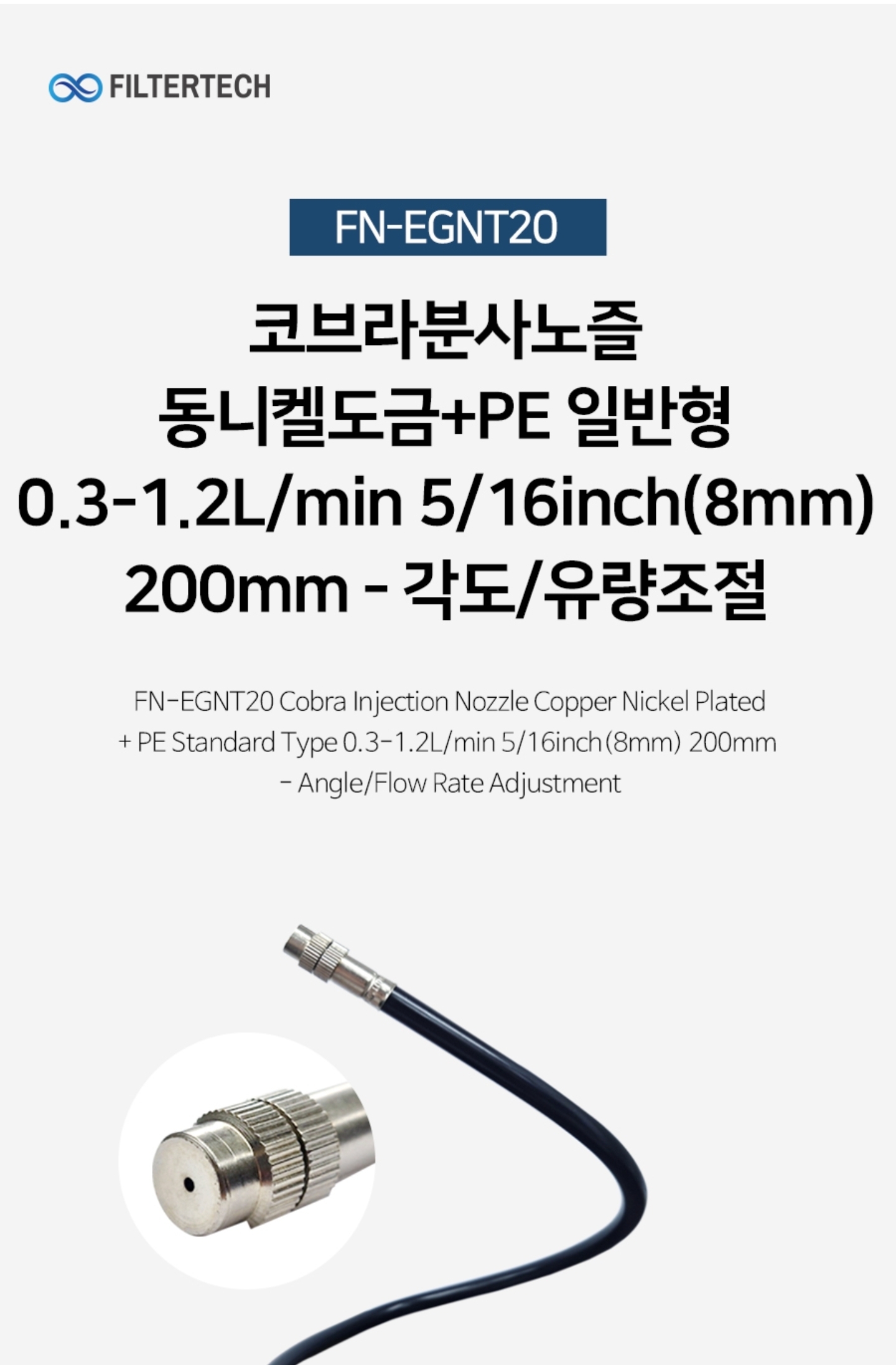 #FN-EGNT20 #코브라분사노즐 #동니켈도금+PE #일반형 #0.3-1.2L/min #5/16inch(8mm) #200mm - #각도/유량조절