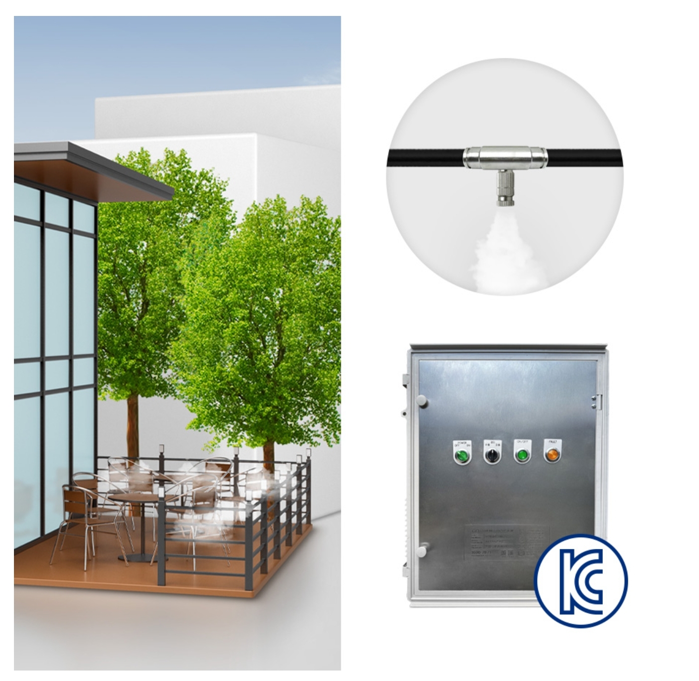 FME2-002 실외기용 쿨링포그시스템(증발냉방장치) 컨트롤러 소형제어반(이코노미타입 온/습도조절) 1.2L+Bar형(나일론호스)폴대 - ICT융합품질인증제품, KCL Q마크품질인증제품, 우선구매대상제품, 쿨링포그, 쿨링로드시스템, 폭염저감시스템, 중소벤처기업부 성능인증, 기술개발제품, 시범구매선정제품, 여성기업,시설물 쿨링포그, 쉘터, 쉼터, 야외시설 쿨링포그, 휴게시설 쿨링포그시스템,야외시설 쿨링포그 FME2-002 Outdoor unit cooling fog system SET(nylon hose bar type mist pole) https://filtertechcorp.com/goods/view?no=245148