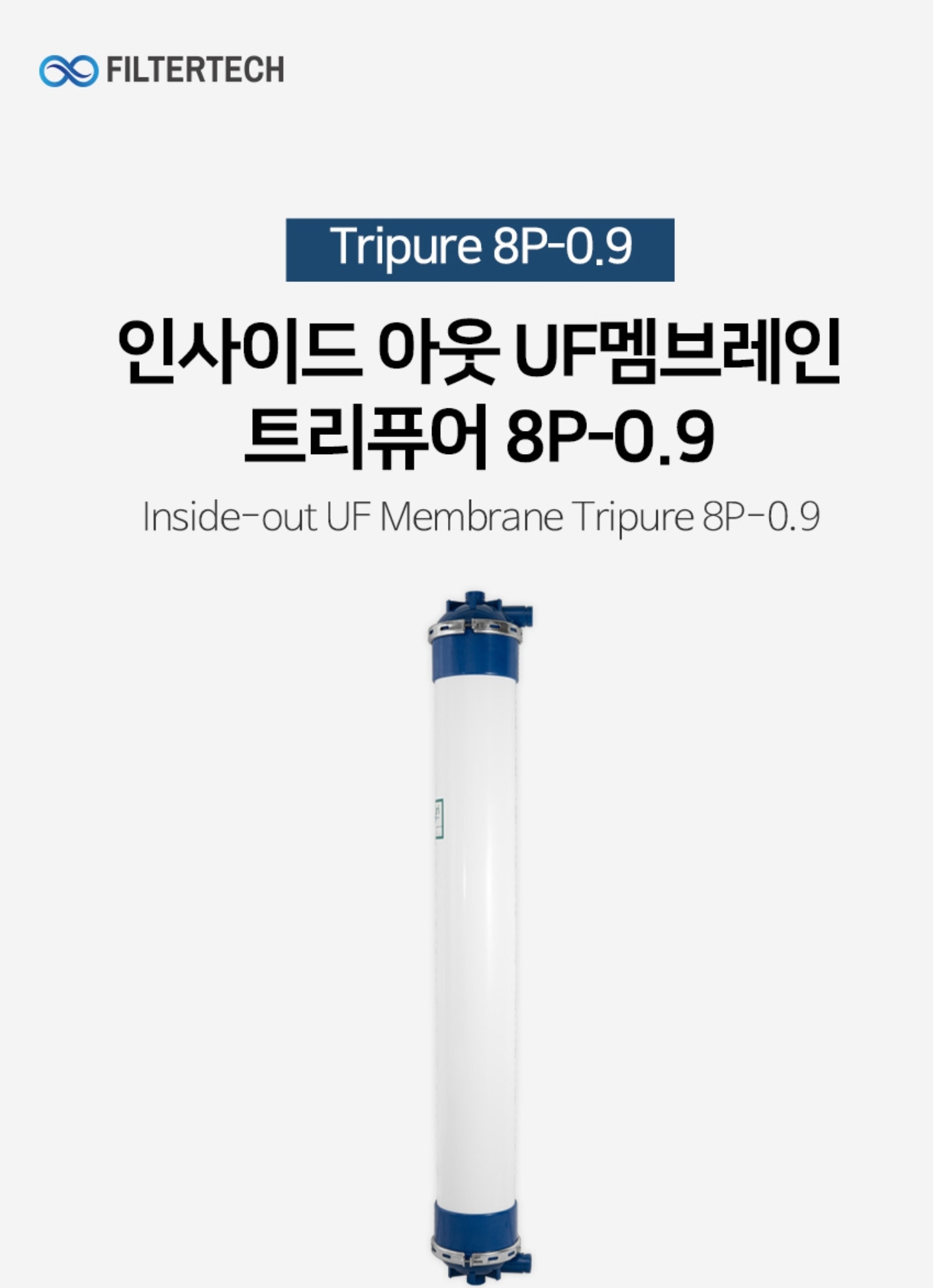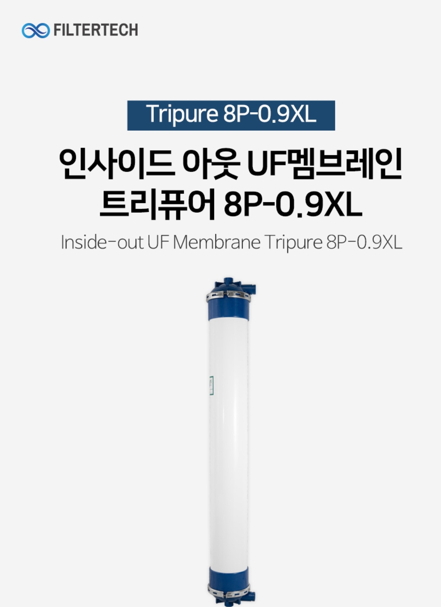 Tripure 8P-0.9XL TRIHIGH Inside-out UF 멤브레인 - 입출수2인치,여과량 60-120,작동온도범위 5도~45도,작동