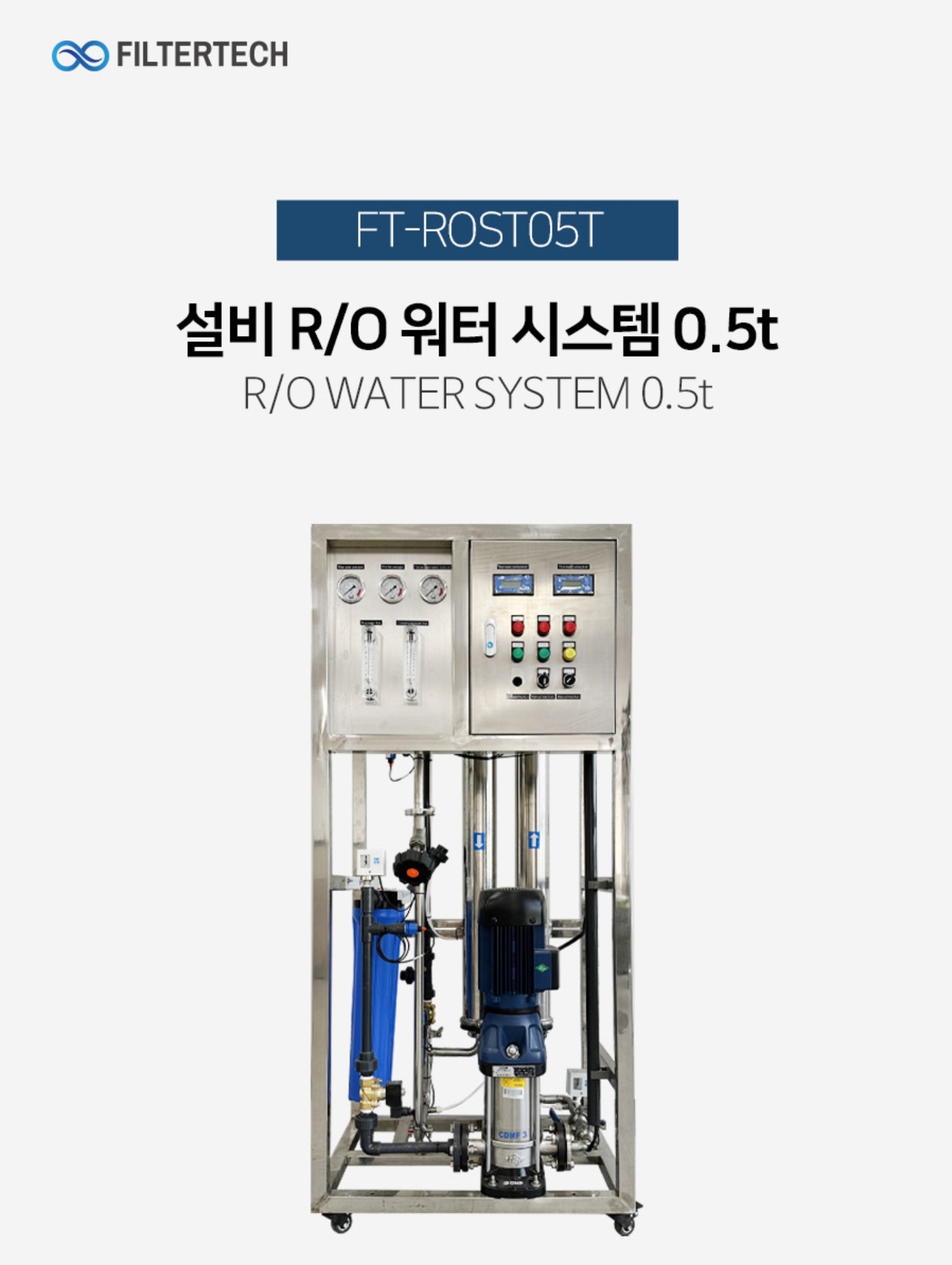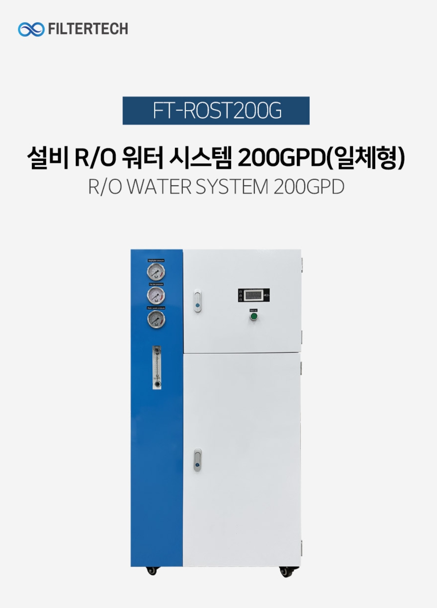 FT-ROST200G R/O 워터 시스템 설비 200GPD(일체형) - 처리량700L/Day, 용량30L/Hr, 크기L650xW500xH1300