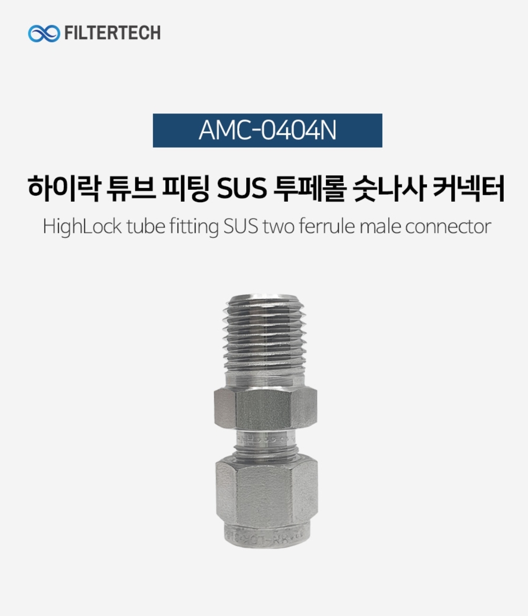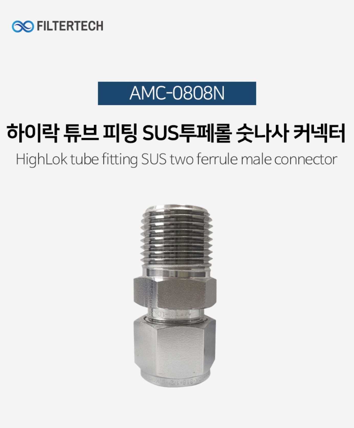 AMC-0808N 하이락 튜브 피팅 SUS 투페롤 숫나사커넥터 1/2:1/2 - 쿨링포그,락피팅,고압피팅,페럴,커넥터,배관부속